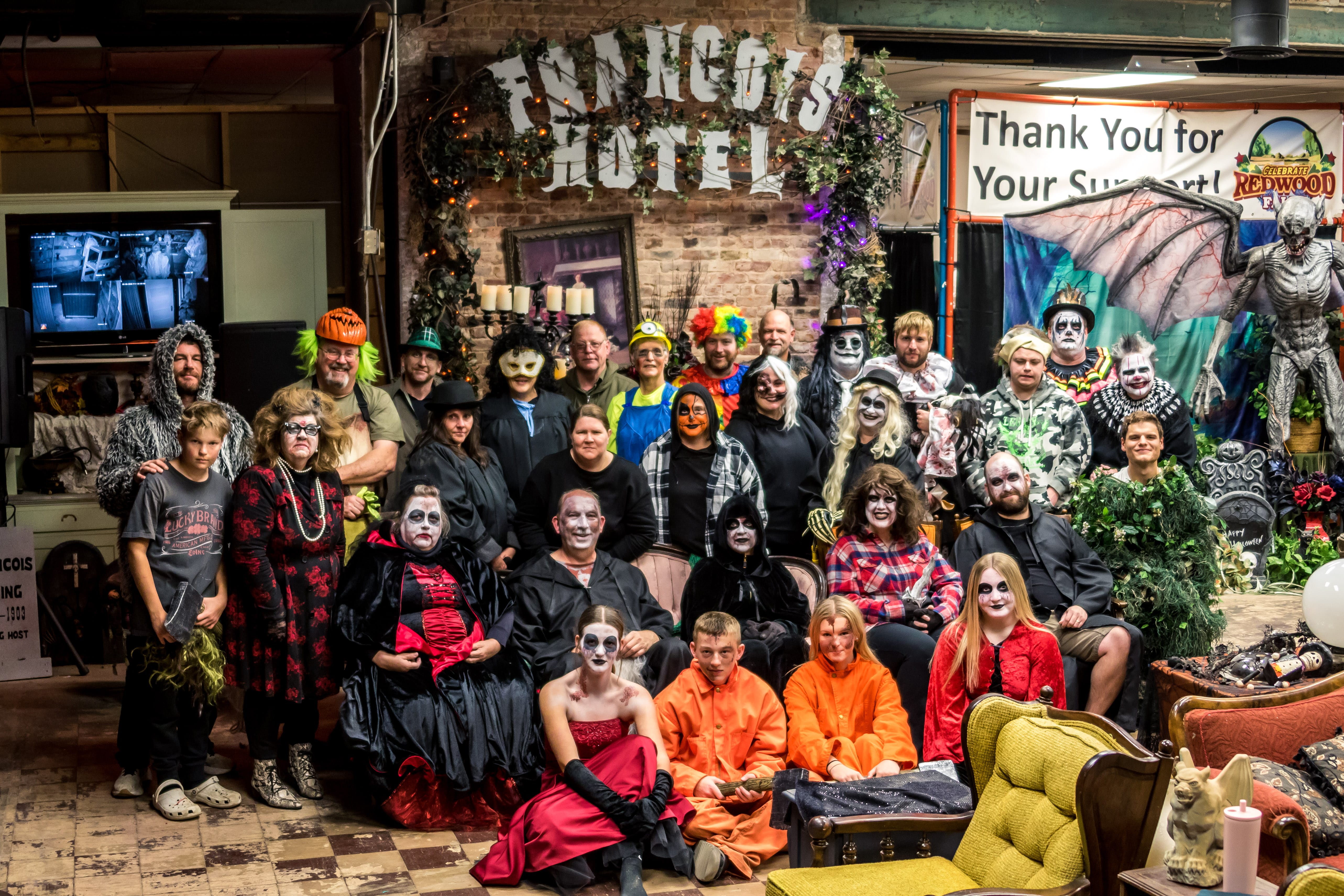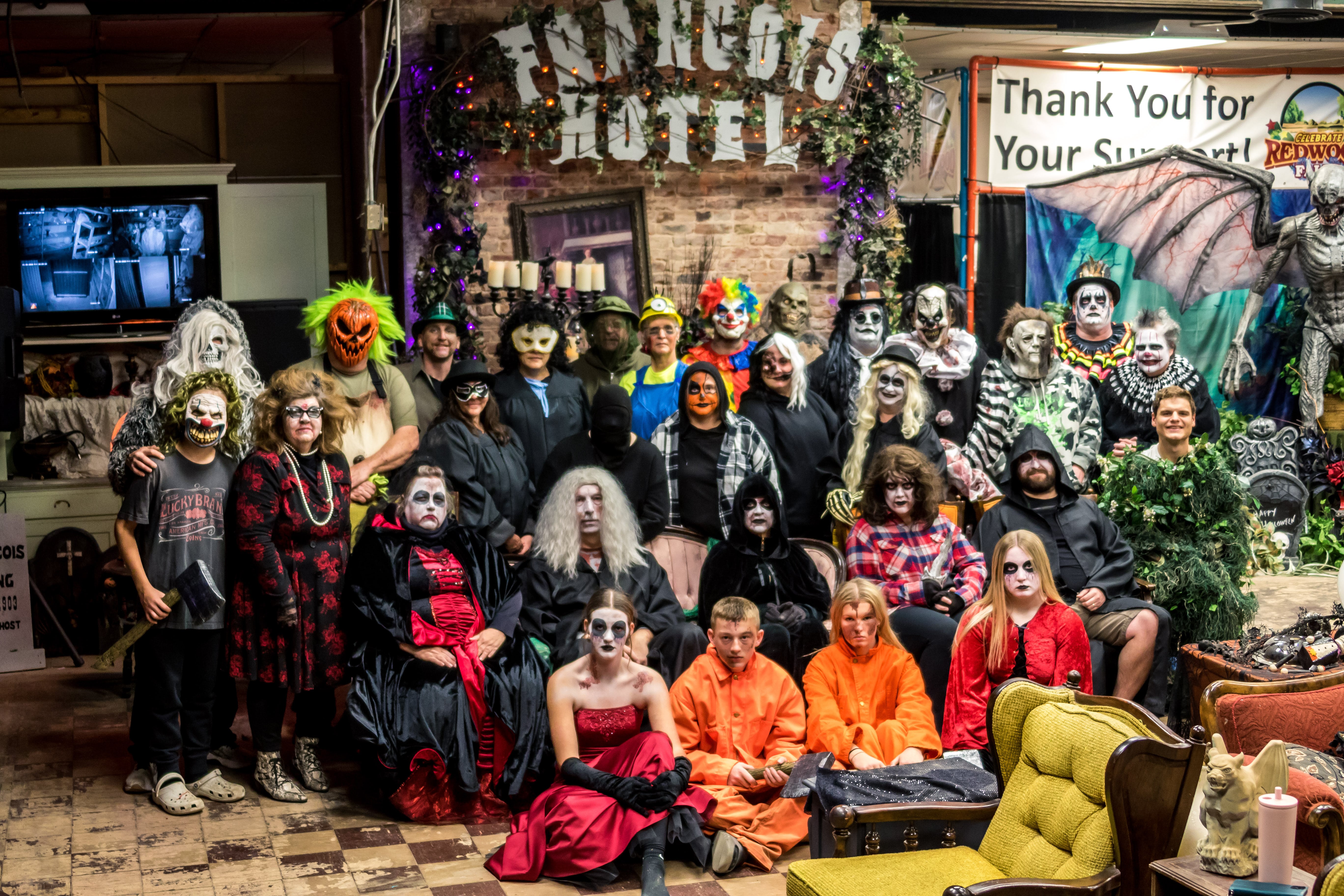 Nearly 40 volunteers every night (not all are in the photo)--that's a LOT of monsters, bellhops, ticket sellers, makeup artists, and storytellers. Would you like to get involved? Come to orientation tomorrow (Wed 10/22) at 6pm and see how much fun it can be! If you can't make orientation, we can get you up to speed on event night, just let us know! https://www.signupgenius.com/go/508084BADAE28A1FA7-59687346-francois Thanks to all of our past volunteers who give our guests a great experience! The Francois Haunted Hotel 2 weekends: Fri/Sat Oct 24 & 25 and Fri/Sat Oct 31 & Nov 1 all nights 7-9pm